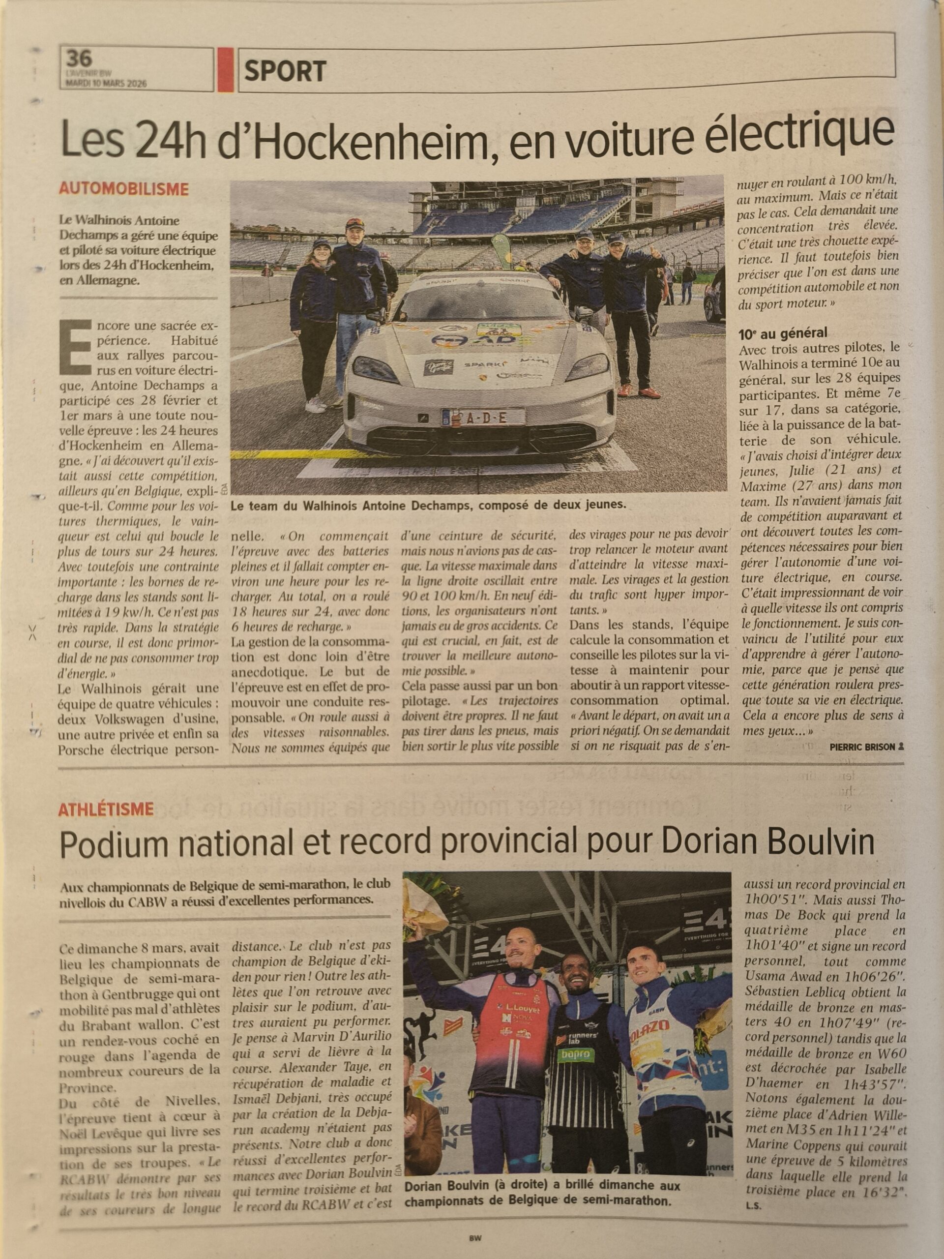 L’Avenir Brabant Wallon p46 – 21-03-2025 – site web – première victoire en e-rallye d’Antoine Dechamps